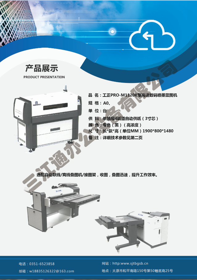 太原市三江通辦公設(shè)備有限公司是一家專(zhuān)業(yè)從事曬圖機(jī)、數(shù)碼復(fù)印機(jī)、多功能打印、復(fù)印、掃描、縮放一體機(jī)、模擬工程復(fù)印機(jī)、繪圖儀、大型掃描儀、電子歸檔設(shè)備、手動(dòng)、自動(dòng)成形圖紙檔案密集柜、圖前圖后設(shè)備以及所有制圖設(shè)備耗材供應(yīng)、維修一條龍的實(shí)體企業(yè)。多年來(lái),已與日本、北京、天津、上海、杭州等諸多家廠(chǎng)方多方合作,成為山西>>更多